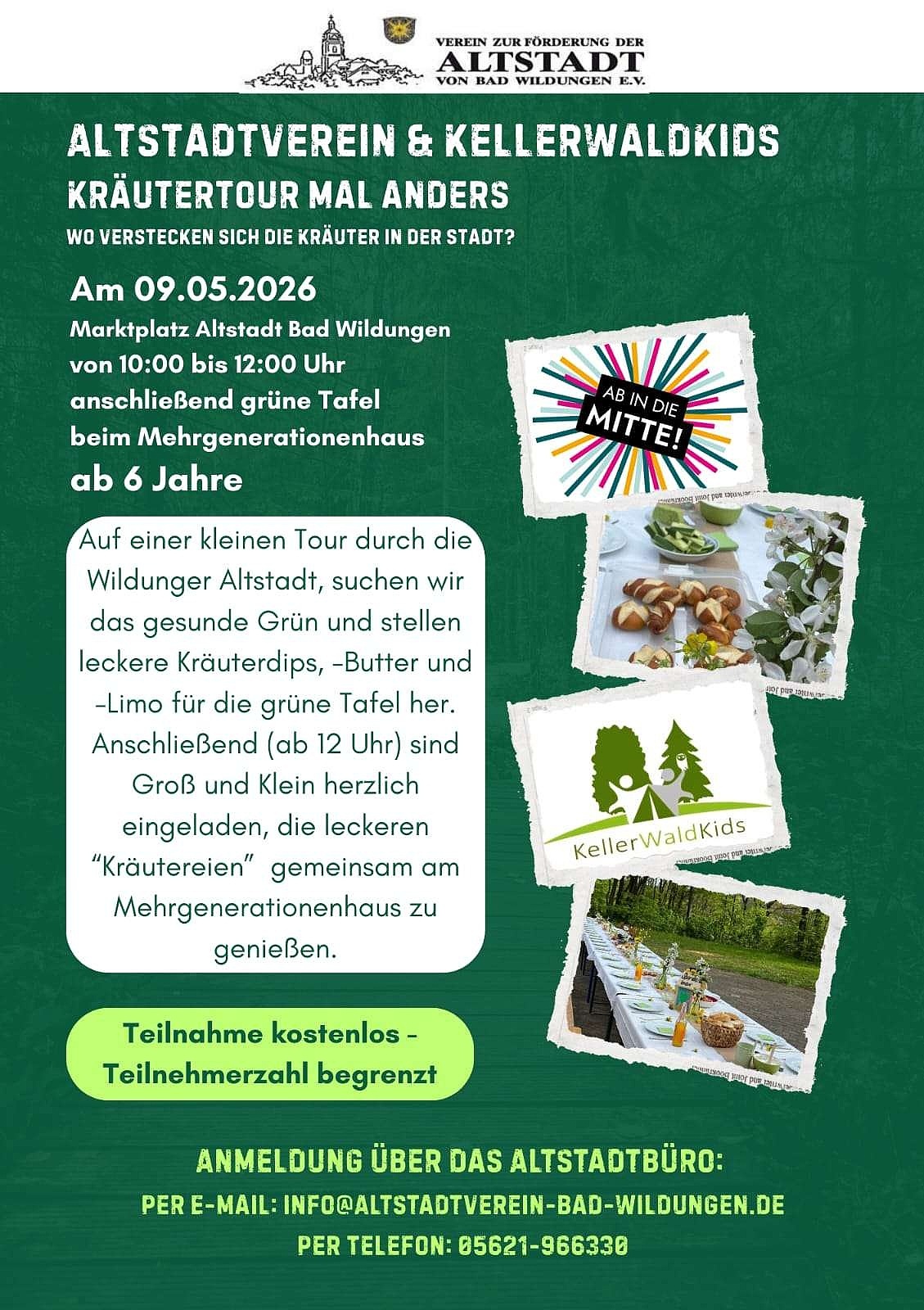 Kostenlose Anmeldung bis zum 30. April unter 05621 966 330 oder per E-Mail an info(at)altstadtvereien-bad-wildungen.de